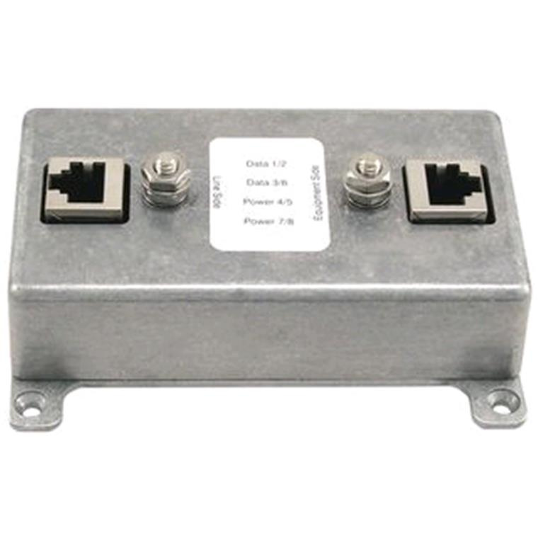 The Hyperlink HGLN-CAT6-HP Lightning Protector provides superior lightning and surge protection for indoor 10/100/1000 Base-T Ethernet networks. The unit has low line to line and line to ground capacitance to minimize distortion of high-speed signals. The design provides protection for both common and differential mode surges. The HGLN-CAT6-HP has been designed to meet the GR-1089 Intra-Building surge protection requirements for 10/100/1000 Base-T Ethernet lines. In addition, the unit is compatible with 802.3af Power-over-Ethernet (PoE) devices. This device supports PoE mode A and B for power. The HGLN-CAT6-HP isolates the cable shield from the metal enclosure and the safety ground. This minimizes the chance of a ground loop being introduced. The HGLN-CAT6-HP features shielded RJ45 jacks with isolation from the metal housing and safety ground. This minimizes the chance for ground loops when using shielded cable. The unit's metal housing helps shield the effects of EMI interference and reduce signal radiation. A ground lug and terminal is provided directly on the lightning protector housing, providing superior grounding. A second ground and terminal is provided for strapping multiple units together. For maximum protection from lightning on long cable runs, two HGLN-CAT6-HP's can be used - one at each end of the cable.