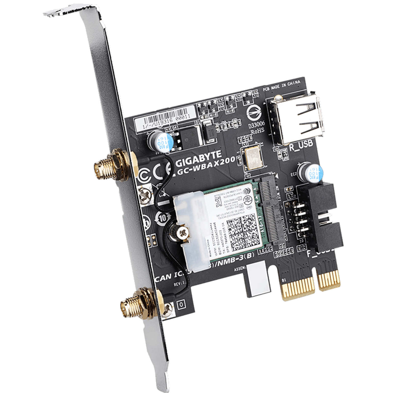 2x2 802.11ax Dual Band WIFI + BLUETOOTH 5 card GC-WBAX200 is an exclusive PCIe expansion card that offers support for the latest 2x2 802.11ax 160MHz Dual Band WIFI and BLUETOOTH 5 connectivity.