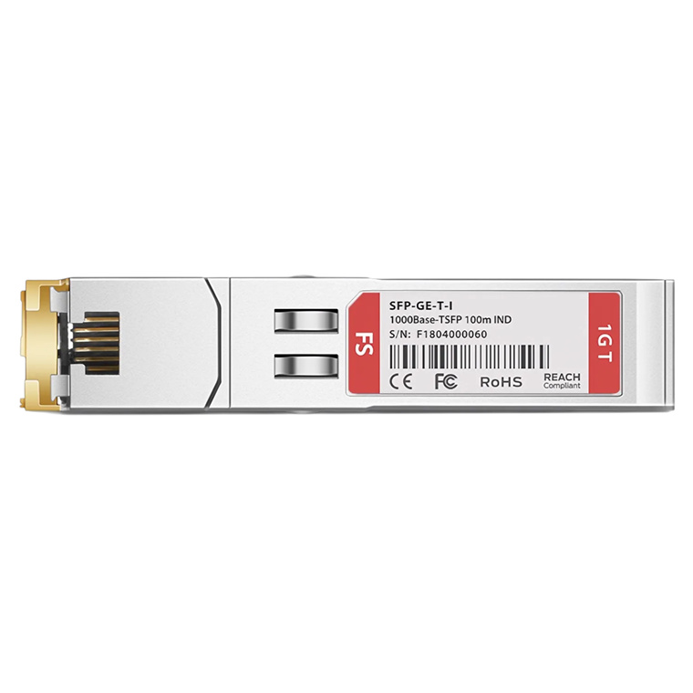 The FS module labeled GLC-TE-I is a copper SFP (Small Form-Factor Pluggable) transceiver designed to support 1000BASE-T Gigabit Ethernet over twisted-pair copper cabling. It converts an SFP port on a network device (such as a switch, router, or media converter) into a copper RJ-45 port capable of full gigabit speeds. The "RJ-45" interface allows it to use standard Ethernet cables (Cat5e/Cat6 etc.). Being "compatible" with Cisco GLC-TE-I means it is intended as a drop-in replacement or alternative to Cisco's version of the same module. The "Industrial" tag implies it has higher robustness or extended environmental tolerances relative to standard commercial modules.