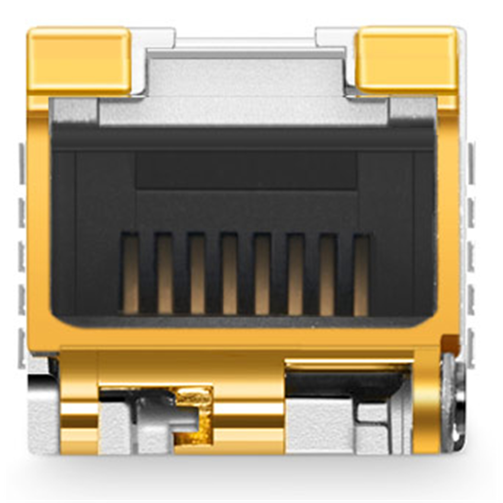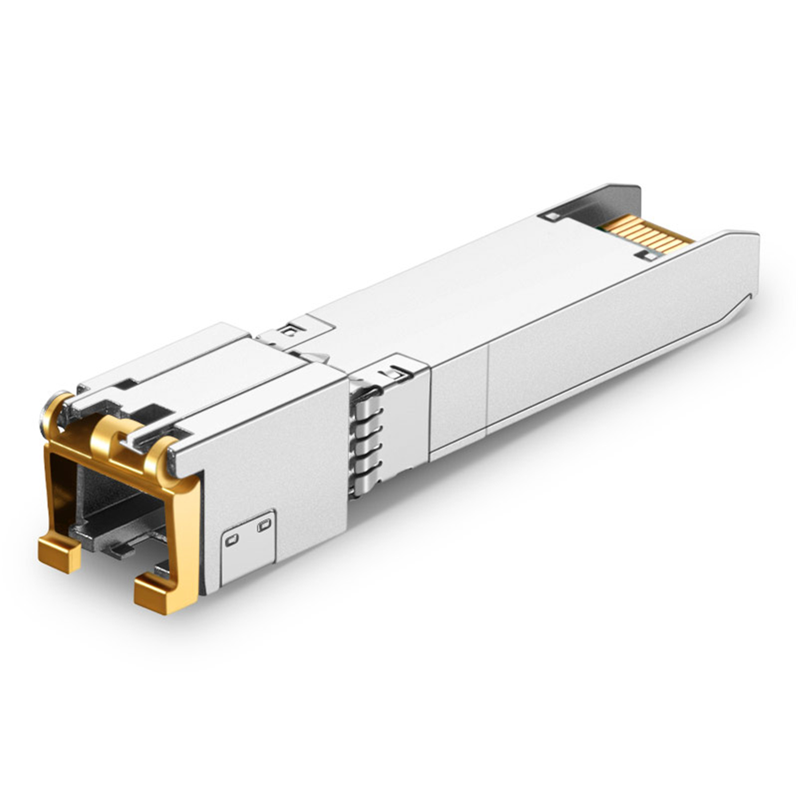 Cisco SFP-10G-T-X compatible SFP+ transceiver provides 10GBase-T throughput up to 30m over cat6a/cat7 copper cable via RJ-45 connector. This transceiver is compliant with IEEE 802.3an, IEEE 802.3az, SFF-8431 and SFP+ MSA. Each SFP+ transceiver module is individually tested to be used on a series of switches, routers, servers, network interface card (NICs) etc. Featuring low power consumption, this easy to install, hot swappable 10G SFP+ transceiver is ideal for enterprise networking for LAN applications and different other networking places using copper connections.