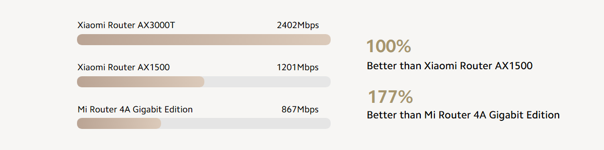 *Data are based on comparisons with Mi Router 4A Gigabit Edition and come from the Xiaomi Internal Lab. Testing was conducted in a house with an area of approximately 130-140m². Actual user experience may vary depending on factors such as wall materials, house layout and size, and environmental interference.