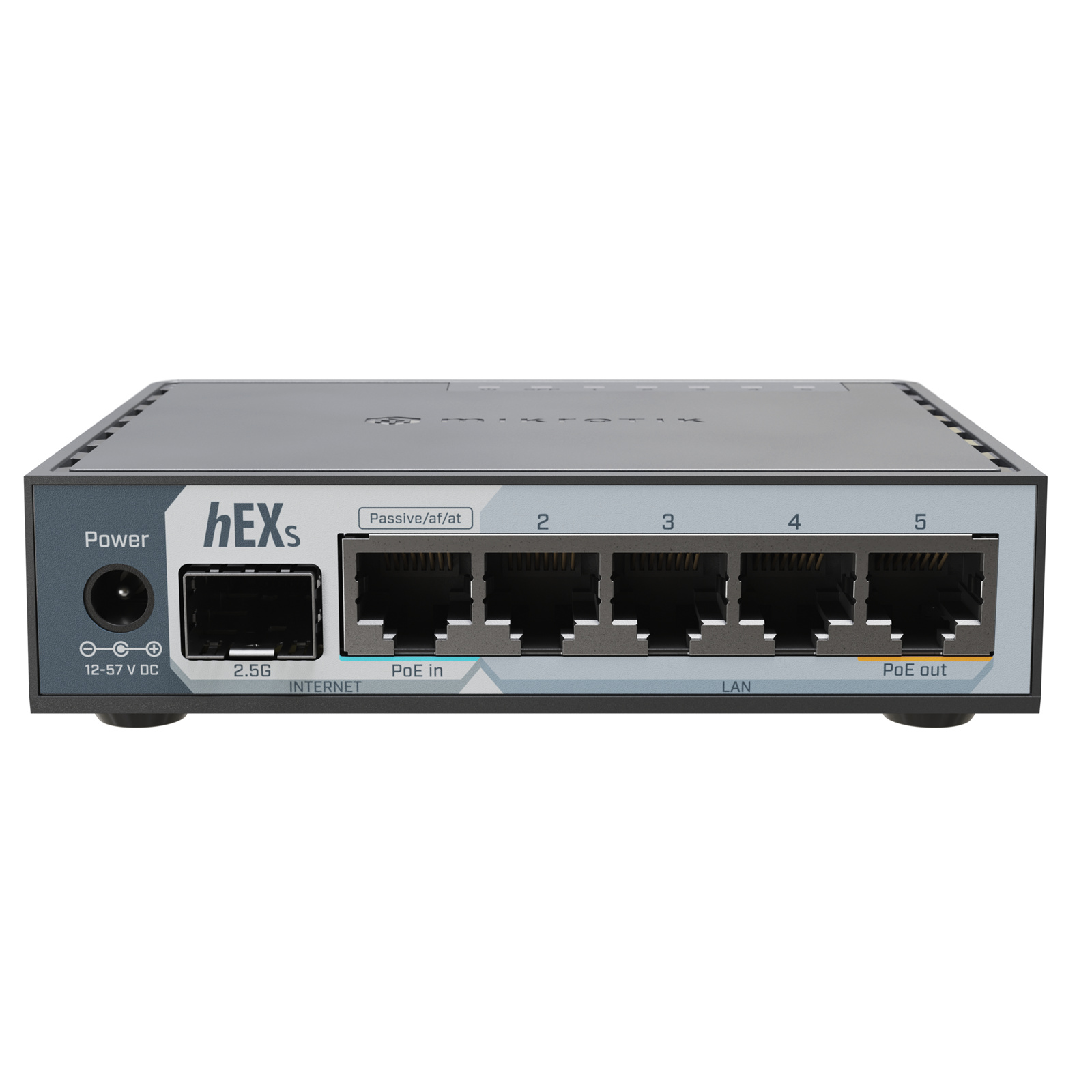 MikroTik hEX S 5 Port Gigabit Ethernet Router with a 2.5 Gbps SFP Port.