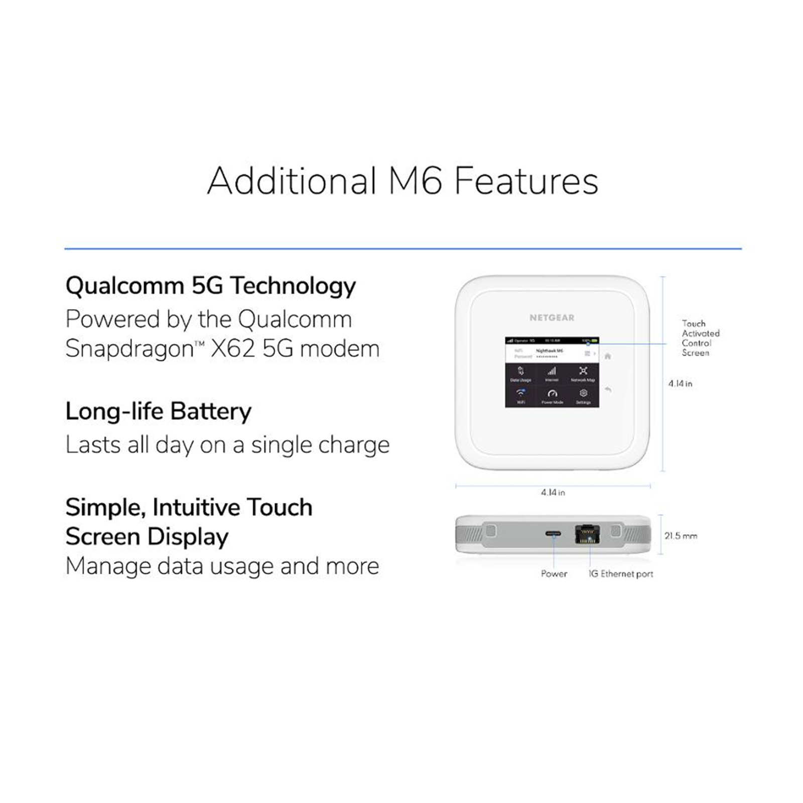 5G WiFi 6 Mobile Router (MR6110) - Nighthawk® M6 5G WiFi 6 Mobile Router With 5G Sub-6 bands, Unlocked