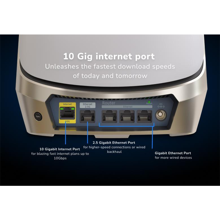 Router:1 x10G WAN & 1 x 2.5G LAN - 3 x 1G LAN Ports - Satellite: 1 x 2.5G LAN - 3 x 1G LAN Ports