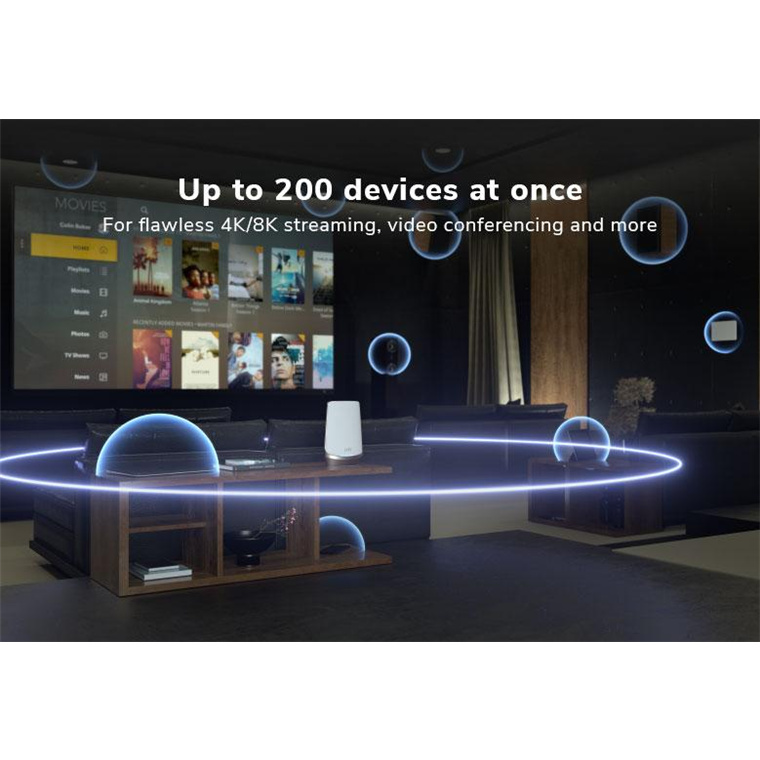 The Orbi WiFi 6E mesh systems is supercharged for today's data intensive devices and smart homes. Connect everything from PCs, phones, and TVs to security cameras, door locks, and more. Only Orbi can deliver so much device capacity with maximum speed for up to 200 devices.