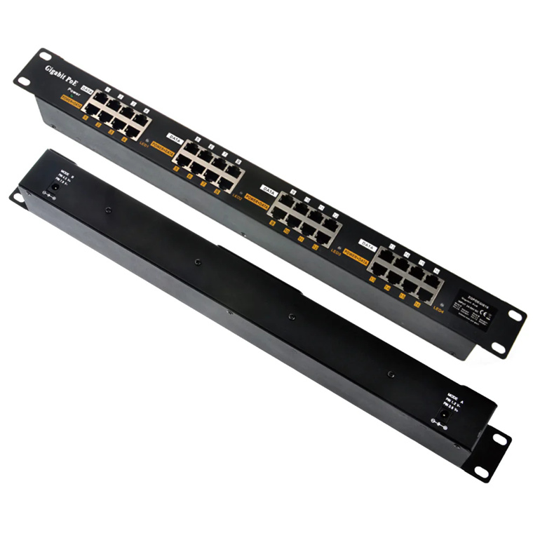 This rack mountable 16 port Gigabit midspan injector is able to provide PoE power and data for 16 devices for up to 100 meters . Use this injector to power IP cameras, VoIP phones, access points, and more. This injector operates on Passive mode A and B and power is "always on".