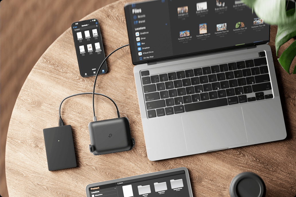 Plug in a USB drive and instantly share files across all connected devices. Whether you're traveling for work or pleasure, keep your media and documents easily accessible.