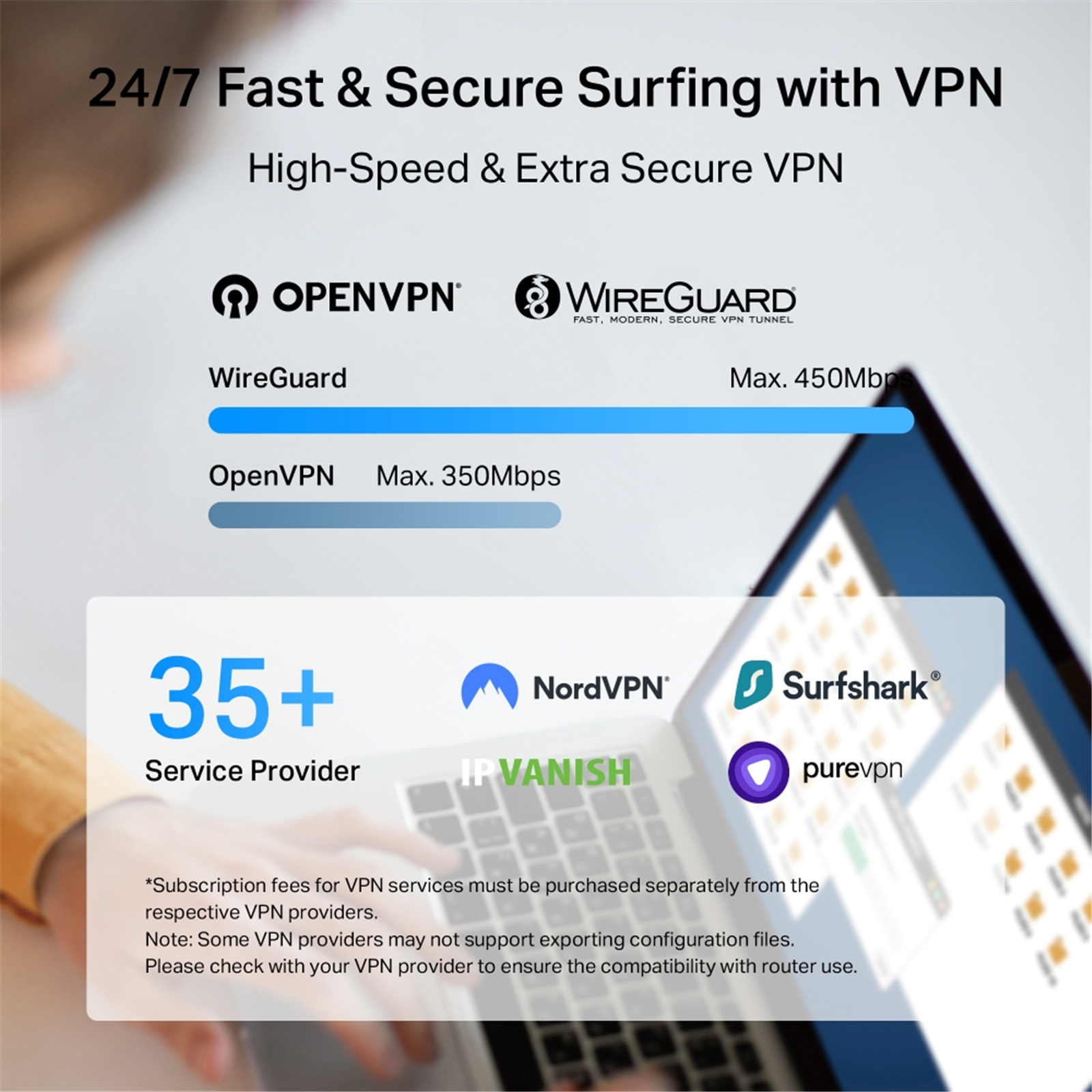 *Subscription fees for VPN services must be purchased separately from the respective VPN providers.