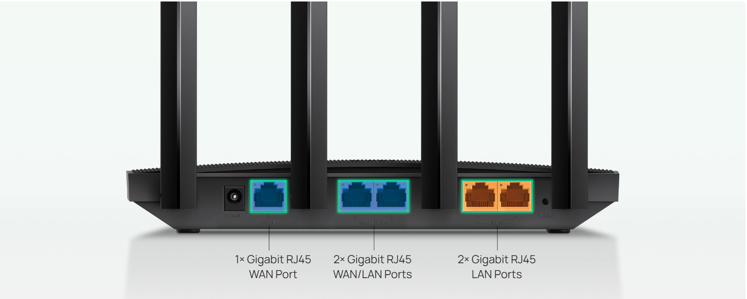 ER605W boasts 1 WAN, 2 WAN/LAN, and 2 LAN ports, meeting diverse internet needs. Attach your wired devices like desktops or 4K HDTVs to ER605W for a seamless experience.