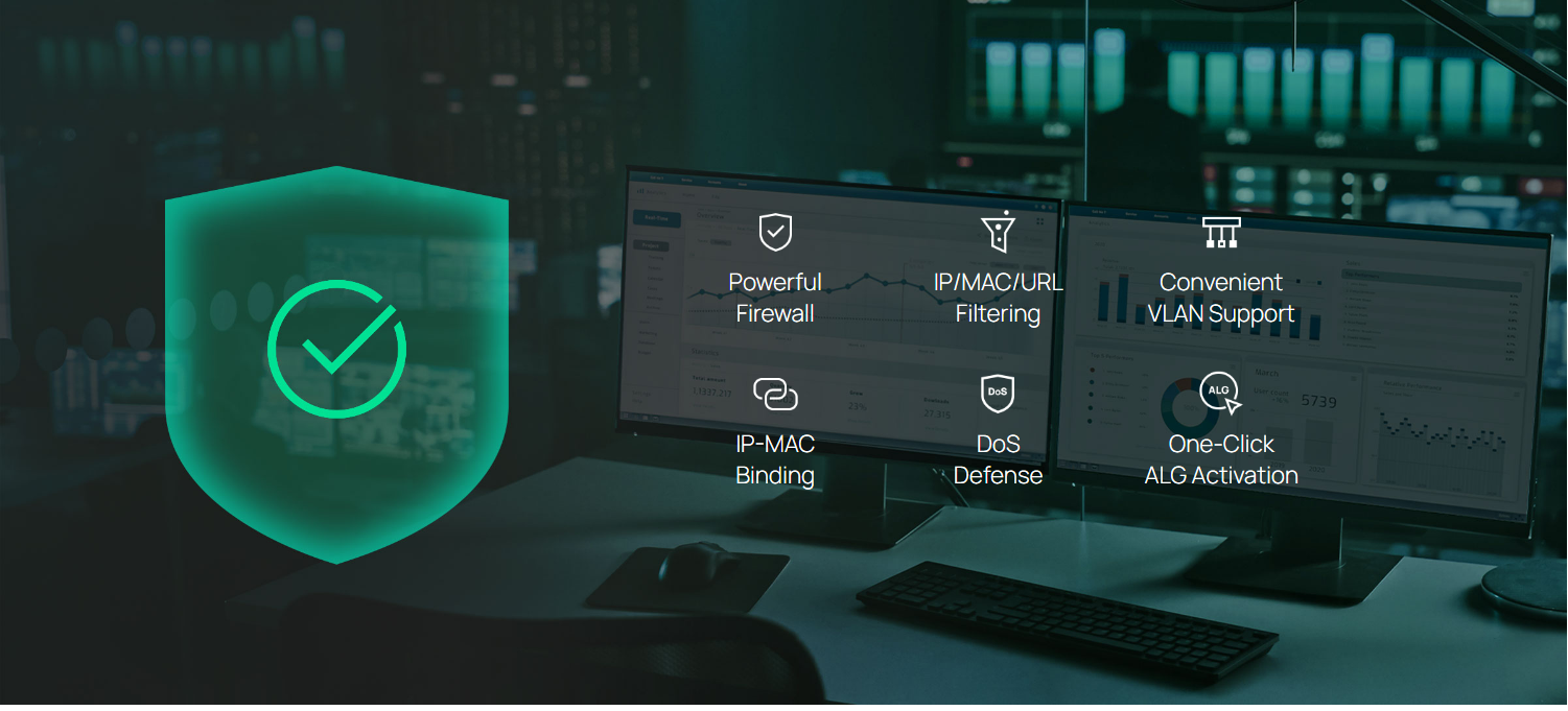 - DoS Defense, IP/MAC/URL Filtering, and More Abundant Security Features