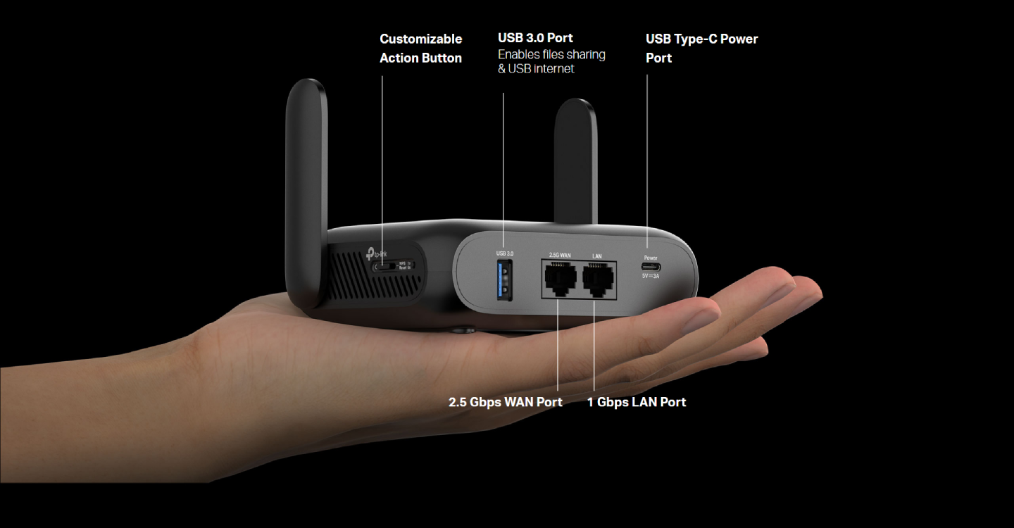 TP-Link TL-WR3602BE Dual-Band WiFi 7 Portable Travel Router 2.5GbE x 1 - 1GbE x1 - USB 3.0 x1