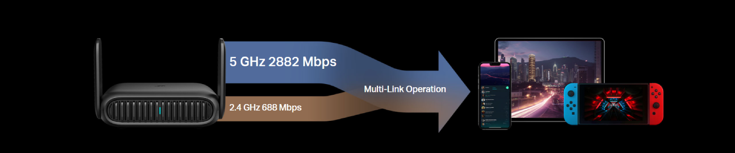 [2]Use of Wi-Fi 7 (802.11be), Wi-Fi 6 (802.11ax), and features including Multi-Link Operation (MLO), 4K-QAM, Multi-RUs, OFDMA, and MU-MIMO requires clients to also support the corresponding features.