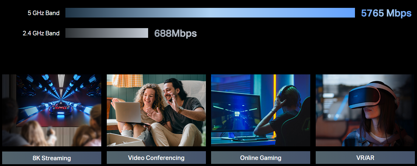 - 2.4 GHz: 1376 Mbps (802.11be)
