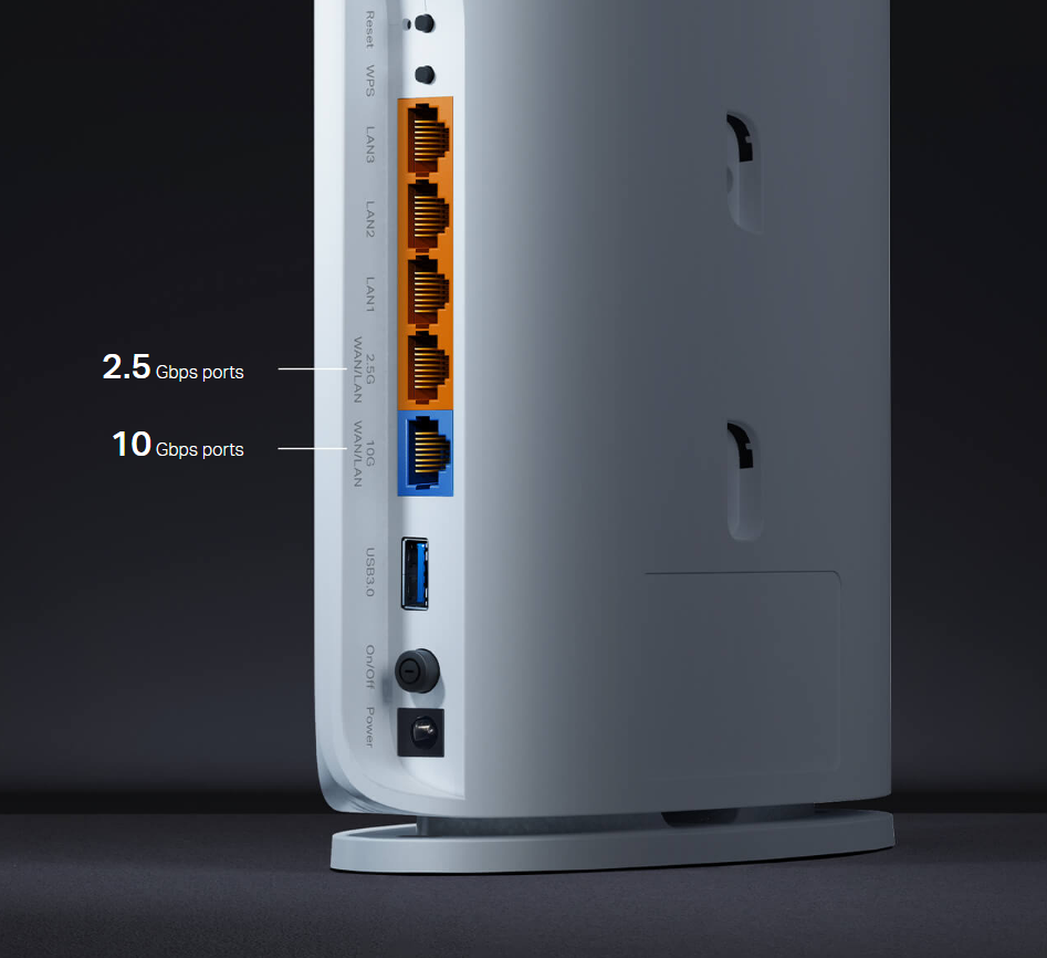 - 10G and 2.5G Wired Connection: 1× 10 Gbps WAN/LAN port, 1× 2.5 Gbps WAN/LAN port and 3× 1 Gbps LAN ports offer high-speed data transmissions.3