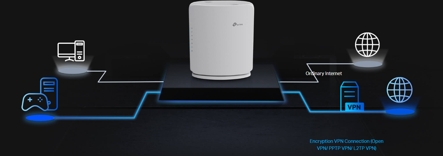 Allow devices in your home network to access remote VPN servers without needing to install VPN software on every device. Archer BE450 can run both the VPN and ordinary internet connections at the same time, delivering security and flexibility.