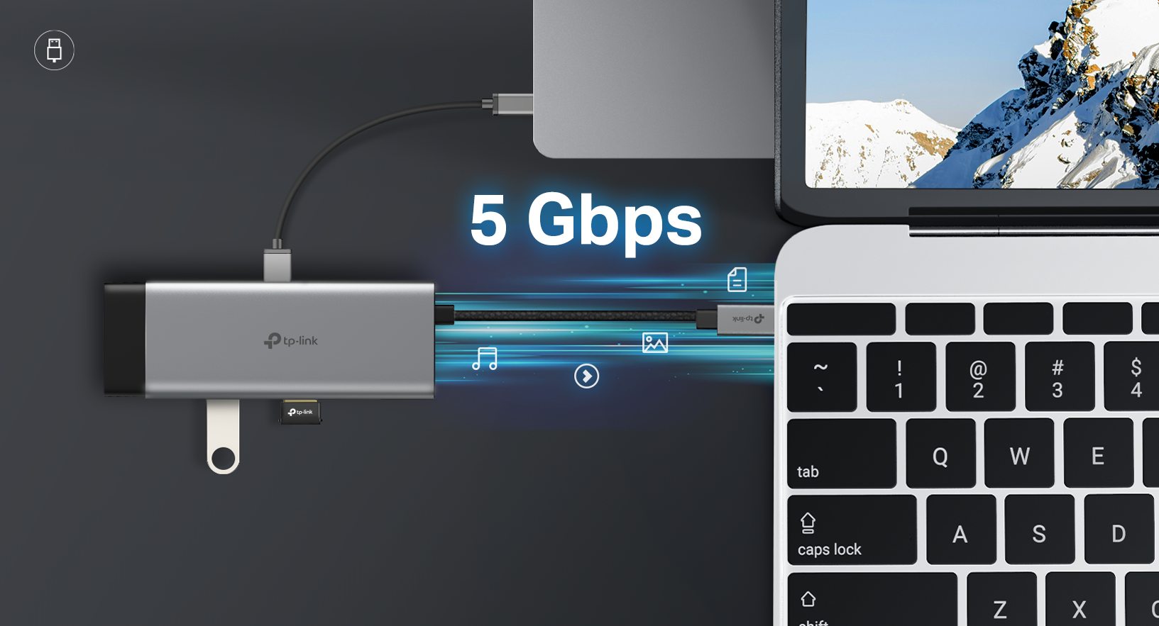 TP-Link UH7021C USB Type-C 7-in-1 Hub 4K60Hz HDMI / SD & microSD UHS-I / 100W Power Delivery / 3 USB-A Data Ports