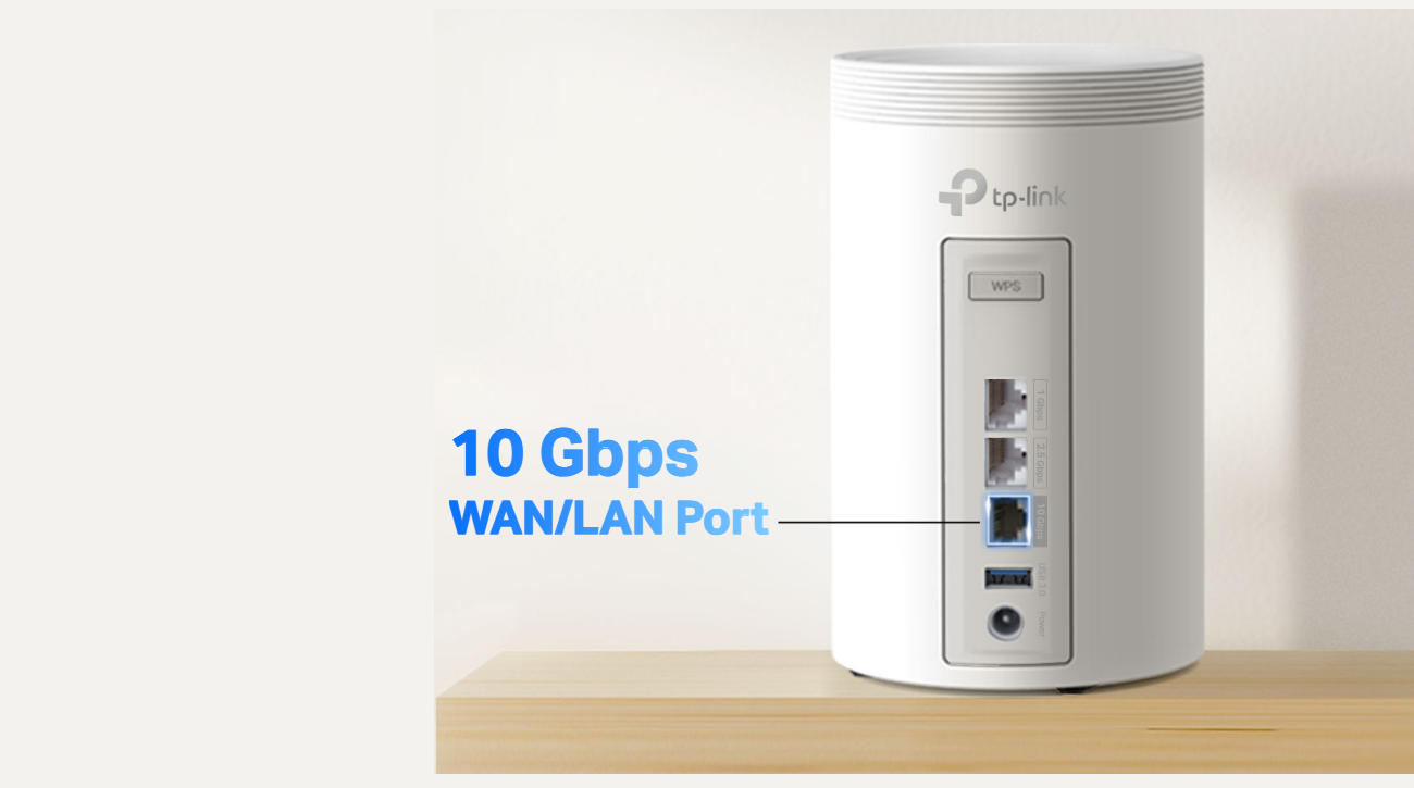 - Unprecedented 10 Gbps Network: 1× 10 Gbps WAN/LAN port + 1× 2.5 Gbps WAN/LAN port + 1× 1.0 Gbps port ensure max flexibility and boosted throughput.