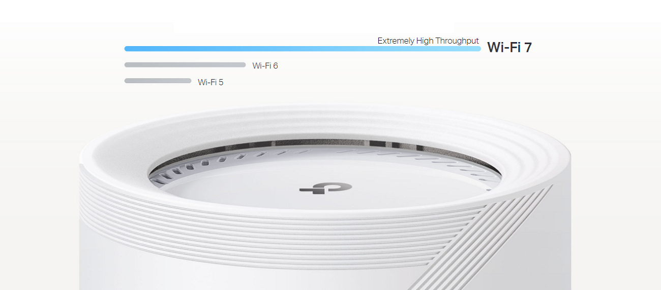 2. Use of Wi-Fi 7 (802.11be), Wi-Fi 6 (802.11ax), and features including Multi-Link Operation (MLO), 320 MHz Bandwidth, 4K-QAM, Multi-RUs, OFDMA, MU-MIMO and BSS Color requires clients to also support the corresponding features. The 320 MHz bandwidth is only available on the 6 GHz band. Simultaneously, the 160 MHz and 240 MHz bandwidths or the 320 MHz bandwidth might not be available on the 5 GHz band or the 6 GHz band, respectively, in some regions/countries due to regulatory restrictions. Double channel width and speed refer to 320 MHz compared to 160 MHz for Wi-Fi 6 mesh.