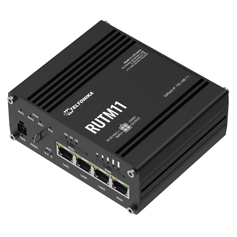 The RUTM11 is an industrial LTE router from Teltonika, designed for applications that demand high data throughput and a robust network connection with zero tolerance for high latency and interruptions. The RUTM11 comes equipped with four Gigabit RJ45 ports, dual-band Wi-Fi, and dual SIM capabilities, enabling multiple failover scenarios. This router features LTE Cat 6, allowing it to achieve cellular speeds of up to 300 Mbps, which can be increased with carrier aggregation.