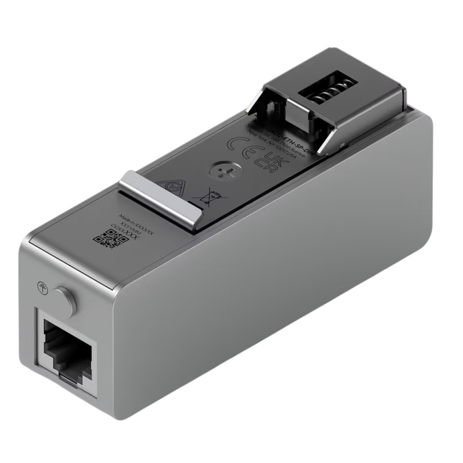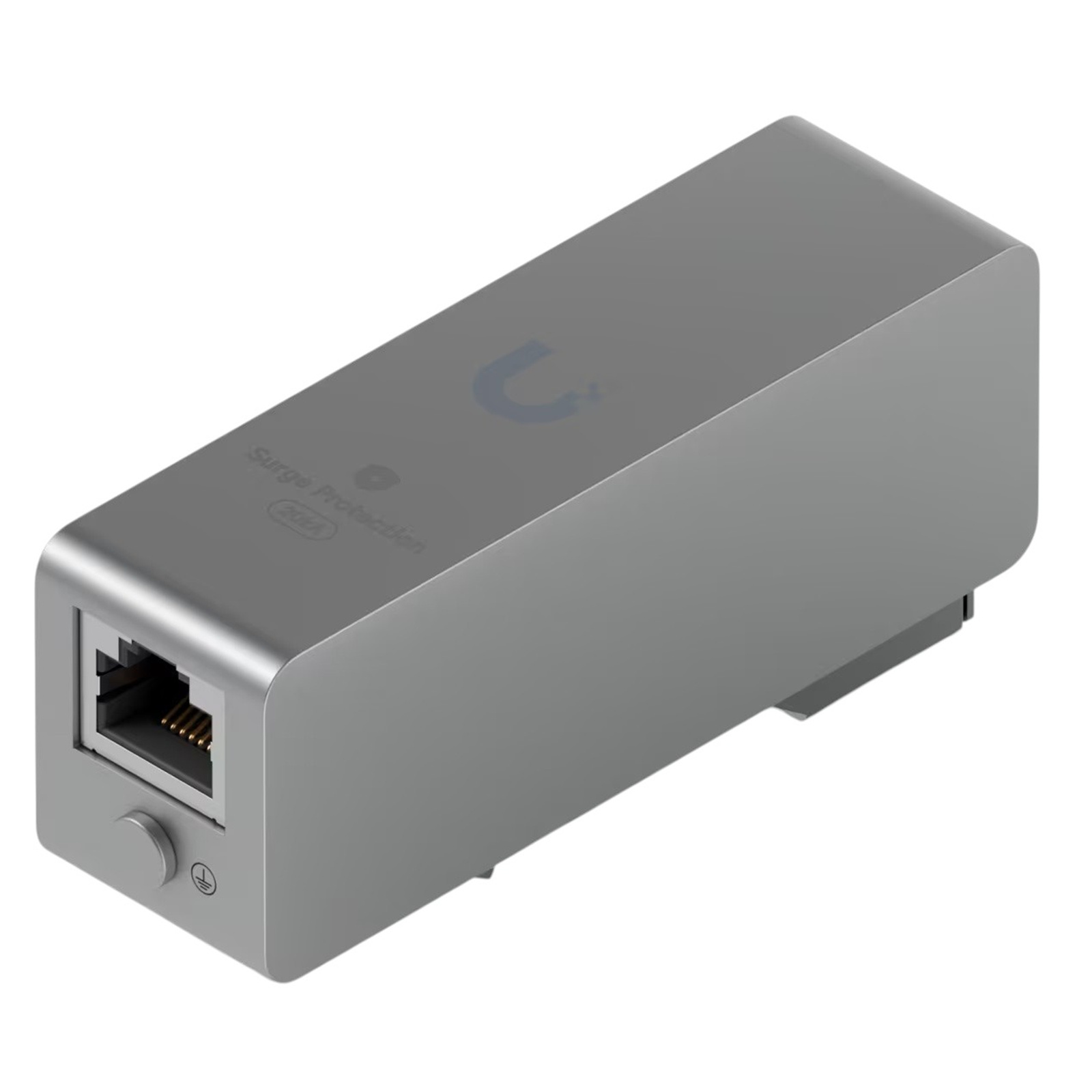 Ubiquiti Ethernet Surge Protection (UACC-ETH-SP-DIN). Bidirectional protection for up to 10 GbE, PoE++, and 20kA surge discharge for indoor installation.