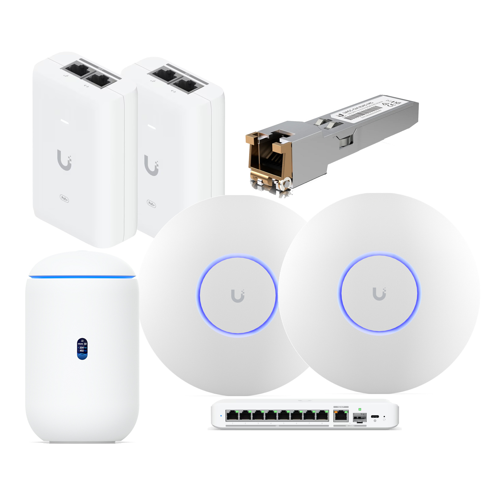 Ubiquiti Unifi Performance Kit for HyperFibre 2000 UDR7 x1 / UACC-CM-RJ45-MG x1 / USW-Flex-2.5G-8 x1 /U7-PRO x2 / UACC-PoE+-2.5G x2