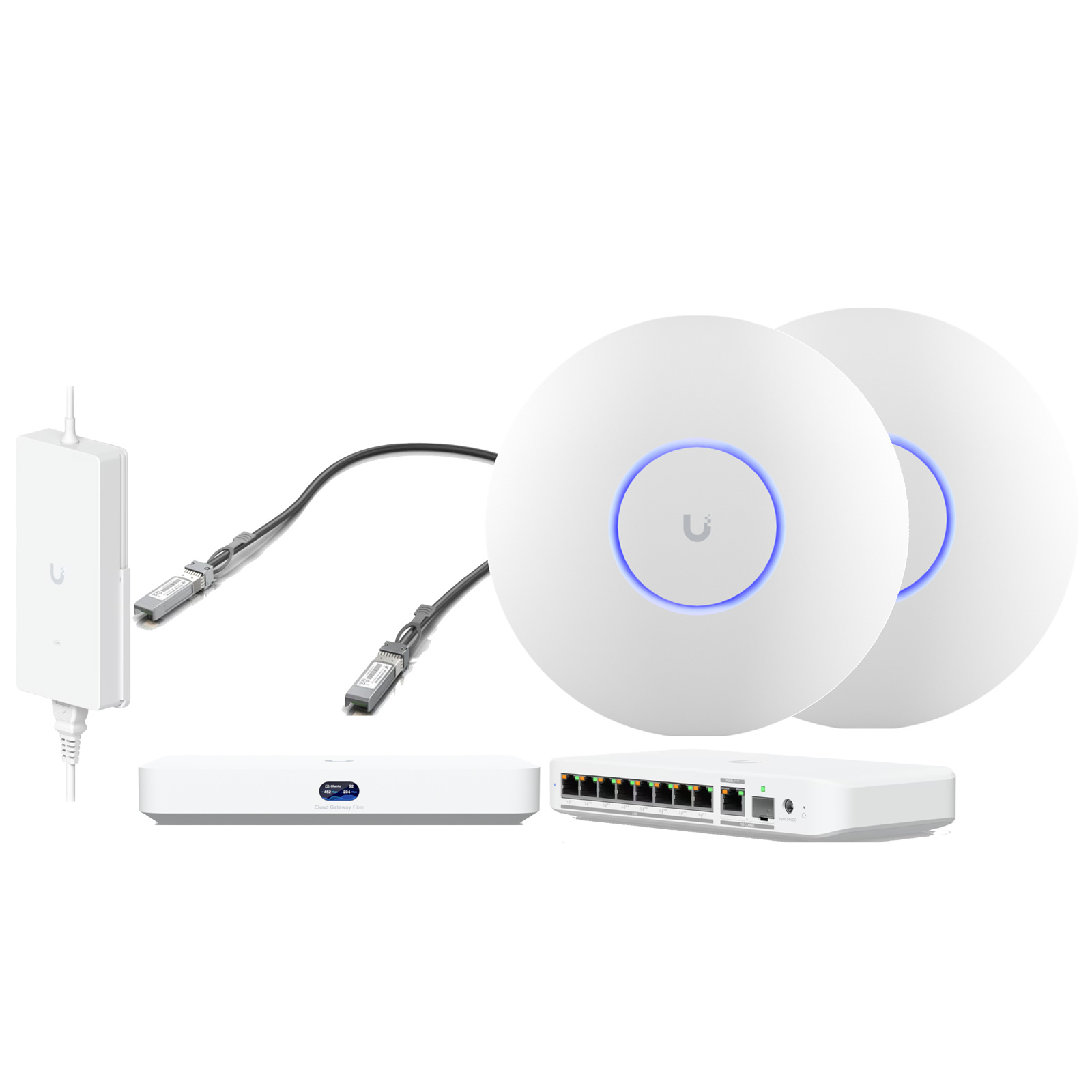 Ubiquiti Unifi Starter Kit for HyperFibre 4000/8000 UCG-Fiber x1 / UACC-DAC-SFP10-0.5M x1 / USW-Flex-2.5G-8-PoE x1 /UACC-Adapter-AC-210W x1 /U7-PRO x2