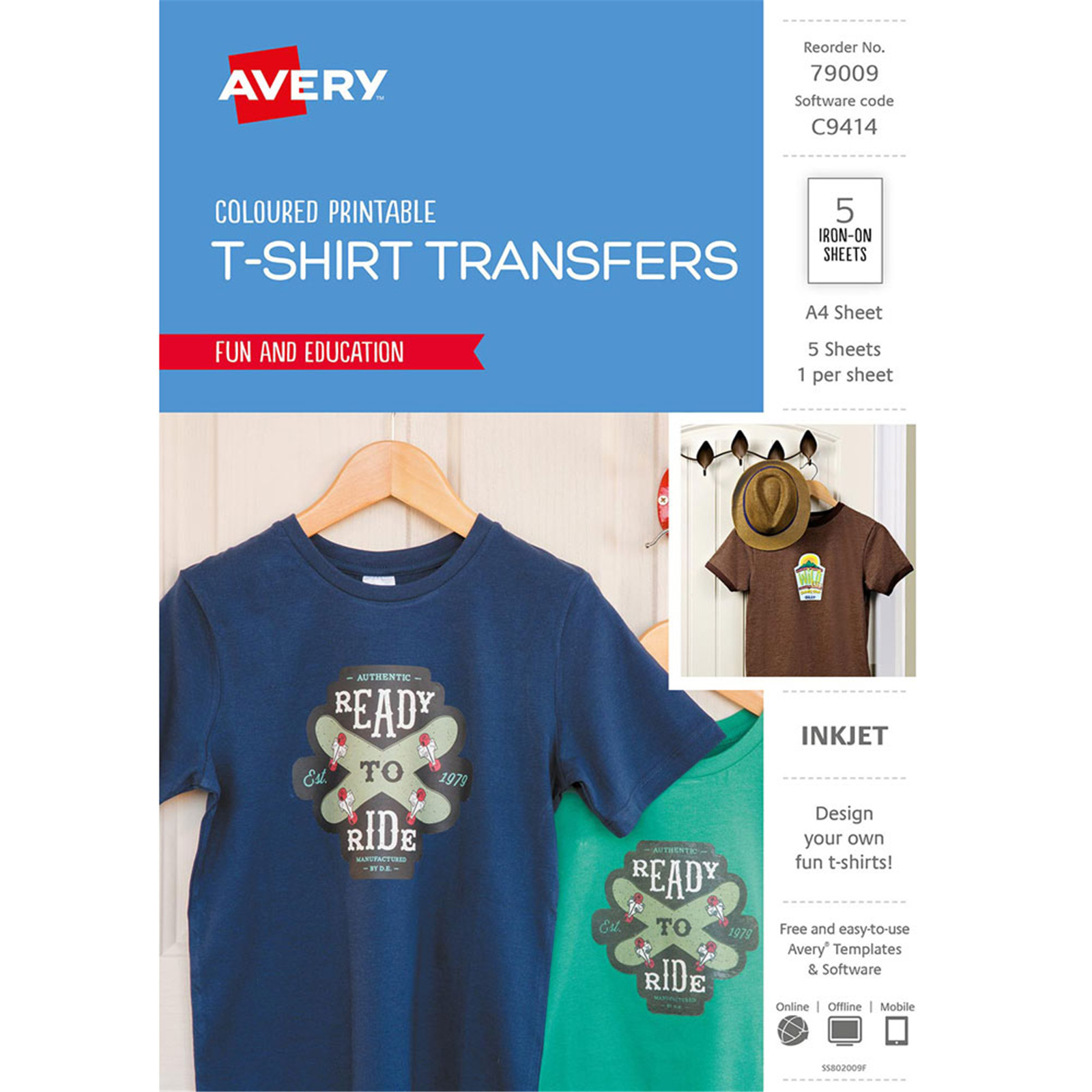 AVERY Tshirt Transfer Inspired C9414 A4 Dark Coloured 1up 5 Sheets
