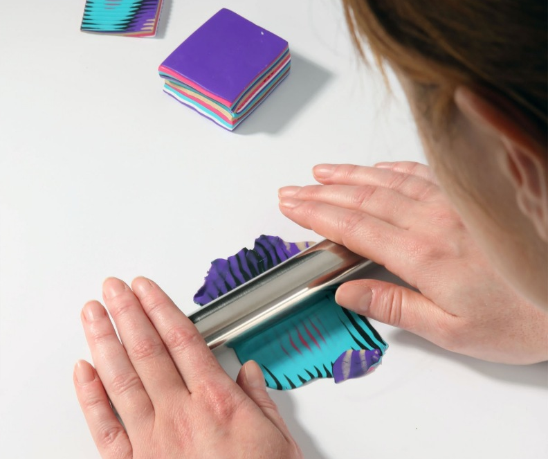 Mix clay colors and work with texture sheets and accessories