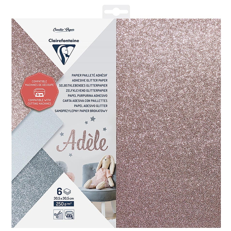 Unleash your creativity with Clairefontaine Cutting Paper Adhesive Glitter, a versatile pack suitable for all your crafting needs. This set includes 6 sheets of self-adhesive glitter paper, each measuring 30.5 x 30.5 cm and weighing 250g. Ideal for card making, scrapbooking, and DIY decorations, these sheets are easy to handle and can be embossed, cut, grooved, or folded for a wide range of creative projects.