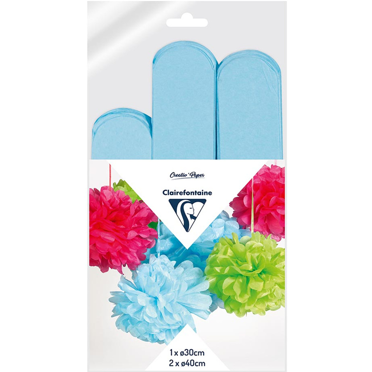 Clairefontaine C395427C Clairefontaine Crepe Pompoms Sky Blue, Pack of 3