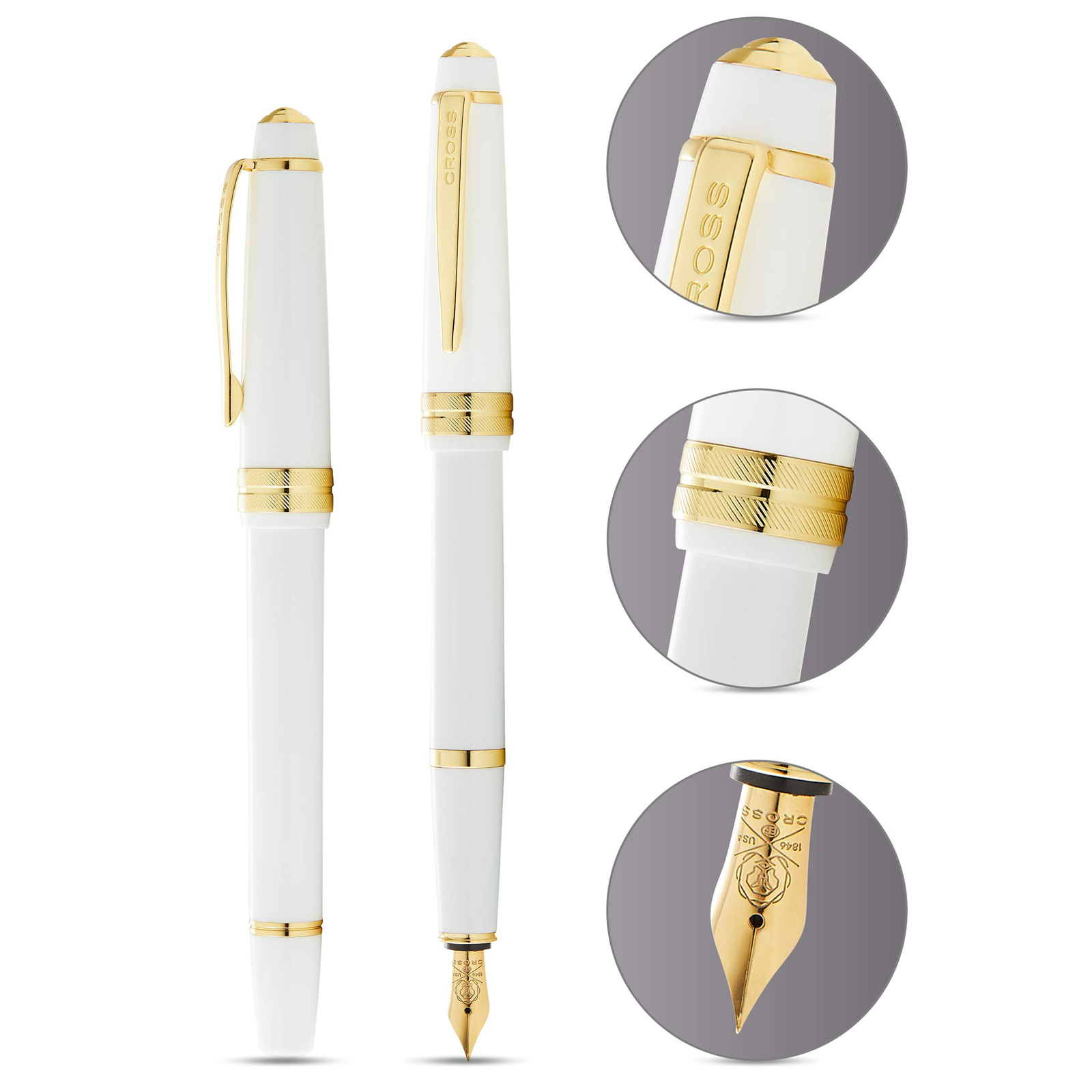 Cross Bailey Light Fountain Pen Polished White Resin and Gold Tone Medium