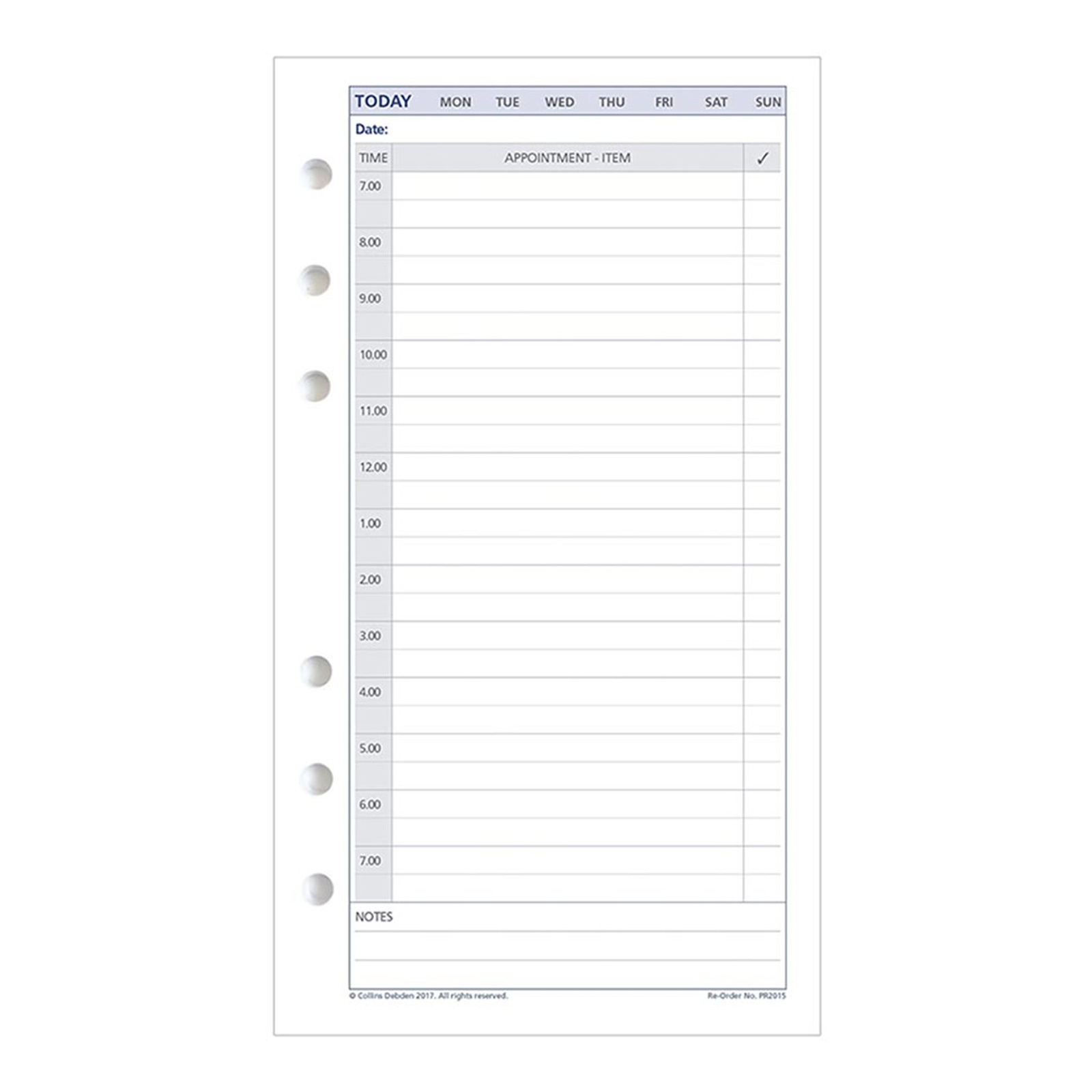 Dayplanner provides a range of accessories and refills printed in two colours on quality white paper. All Debden Dayplanner refills are designed to fit comparable organisers on the market. Suitable for Debden Personal Dayplanner, 6 ring. Undated day to a page refill. 30 undated daily pages.