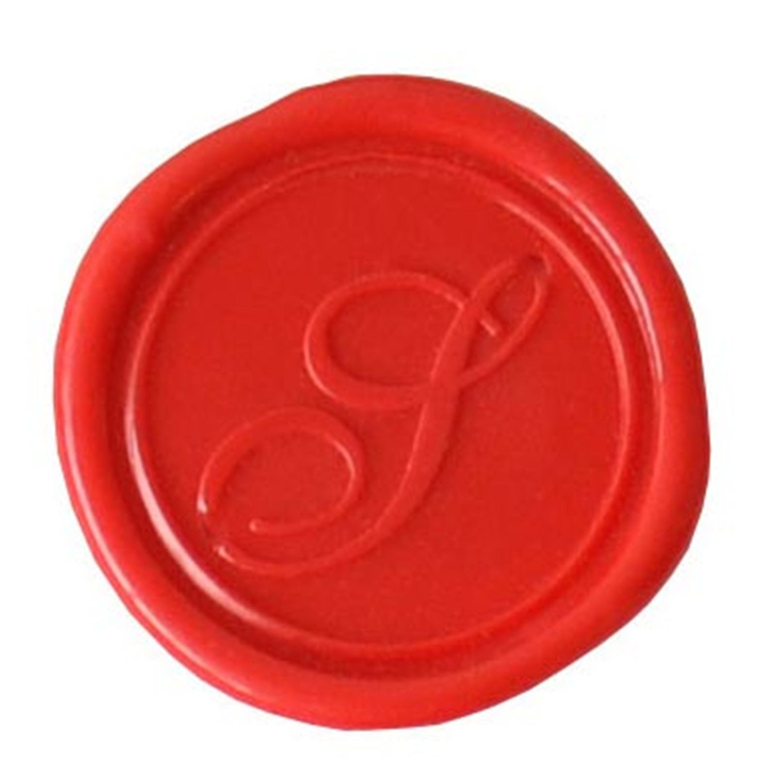 This Herbin Seal is made from 5mm thick brass and the handle is varnished wood. Handle is screwed into the to brass. Seal leaves the letter impression with a circle around it in the wax.
