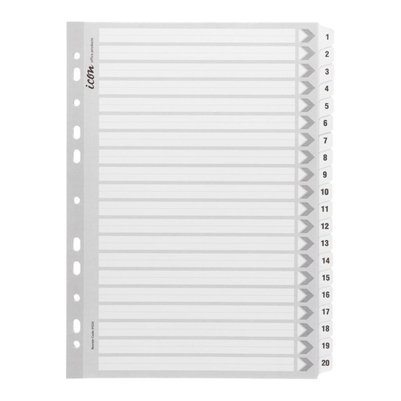 Icon Cardboard Indices with Reinforced Tabs - 1-20 - White
