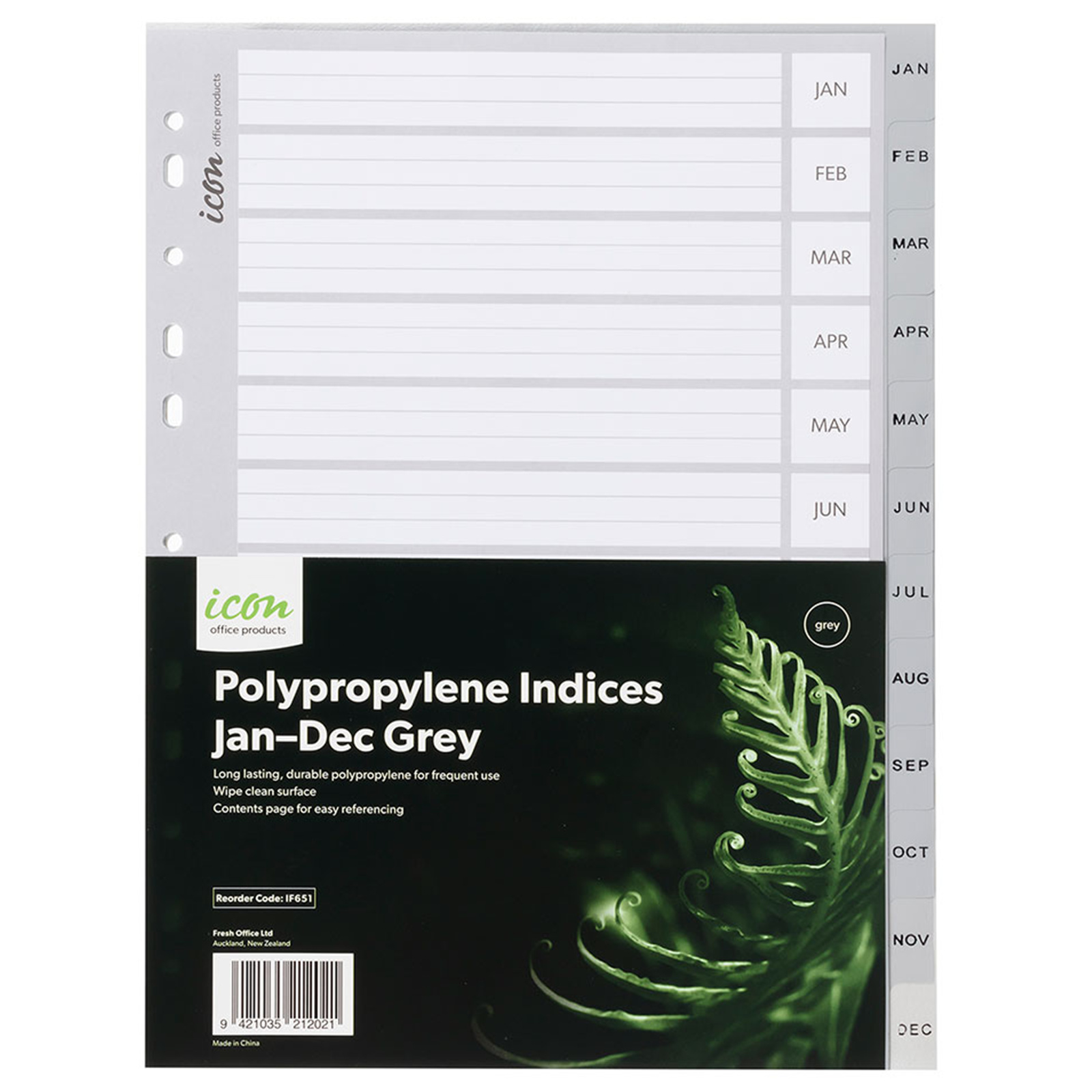 Introducing the Icon PP Indices Jan-Dec Grey, the perfect organizational solution for both office and educational settings. These high-quality polypropylene indices are not only lightweight but incredibly durable, ensuring they won't tear or break under pressure. Designed with practicality in mind, each index is multi-punched to seamlessly fit all standard ring binders, making them an essential item for anyone looking to enhance their filing system. The included separate contents page allows for quick and easy referencing, saving you time during busy workdays or study sessions. With Jan-Dec calendar tabs, you can divide your documents effortlessly throughout the year. The A4 size and sleek grey color add a modern touch to your workspace, helping maintain a professional appearance. Whether you are managing projects, creating presentations, or simply organizing notes, the Icon PP Indices are an invaluable addition to your organizational tools.