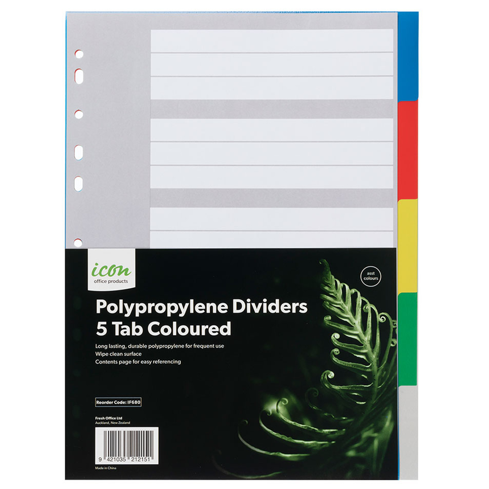 Product URL: https://www.pbtech.co.nz/product/OFSICN5212151/Icon-IF680-PP-Dividers-5-Tab-Coloured