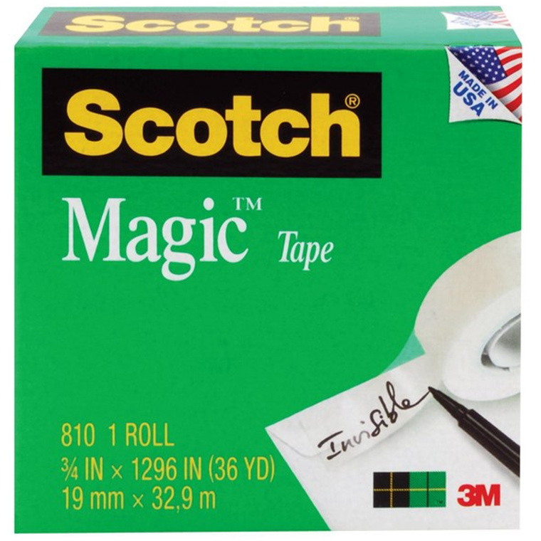 Scotch® Magic™ Tape works as hard as you do to fix all the little imperfections at home, school and the office. The Scotch® Brand's famous matte-finish invisible tape uses unique adhesive technology to bond tightly with paper and disappear without a trace. Write on it with pencil, pen or marker-every word is loud and clear. 19mm x 33m refill roll.