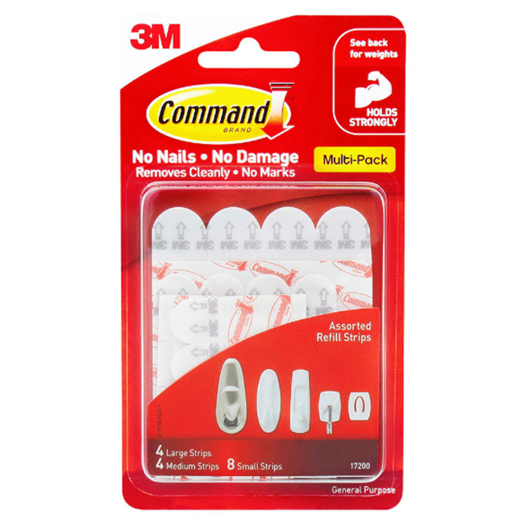 3M Command Strips Refill 17200 - Assorted White Pk/16