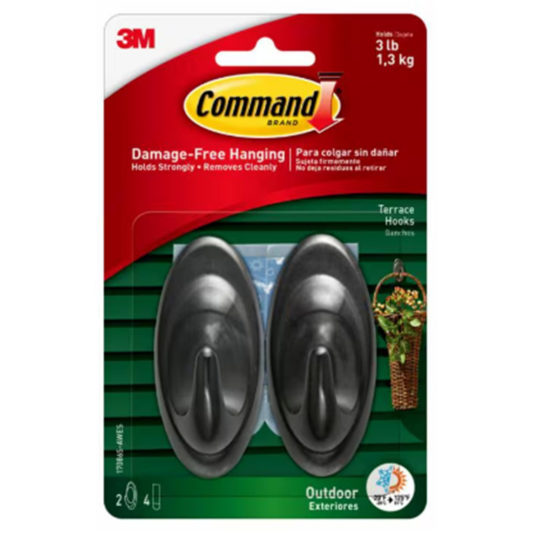 3M 11180 Command Outdoor Terrace Hooks 17086S-AWES Medium Slate, Pack of 2