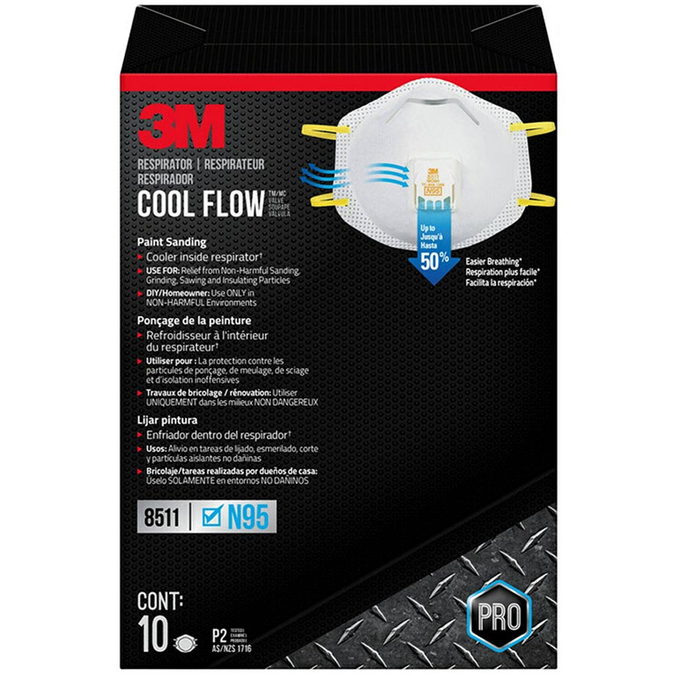 The 3M Cool Flow Valve Particulate Respirator 8511 is designed with the pro in mind to help bring you protection and comfort. It is equipped with a Cool Flow Valve, which helps reduce heat build-up inside the respirator, helping to enhance your comfort during longer jobs. This N95 respirator features Advanced Electrostatic Media that enhances the capture of airborne particles and is designed for easy breathing. An adjustable M-noseclip helps provide a custom, secure seal. Whether you're hanging drywall or sanding a floor, rely on the trusted protection of the 3M Cool Flow Valve Particulate Respirator 8511.