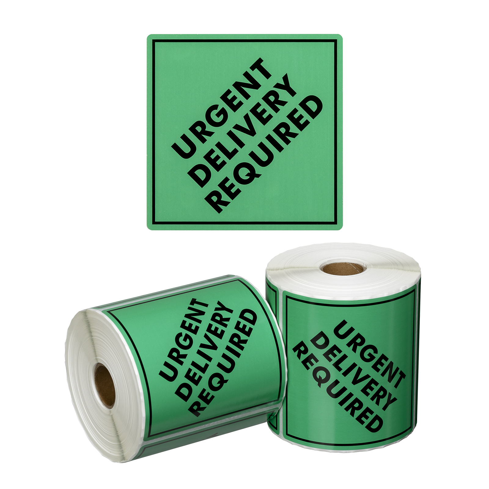 Matthews MPH15110 Handling Label Urgent Delivery Required - Green/Black - 99mm x 99mm - 500 Labels/Roll - 1 Roll