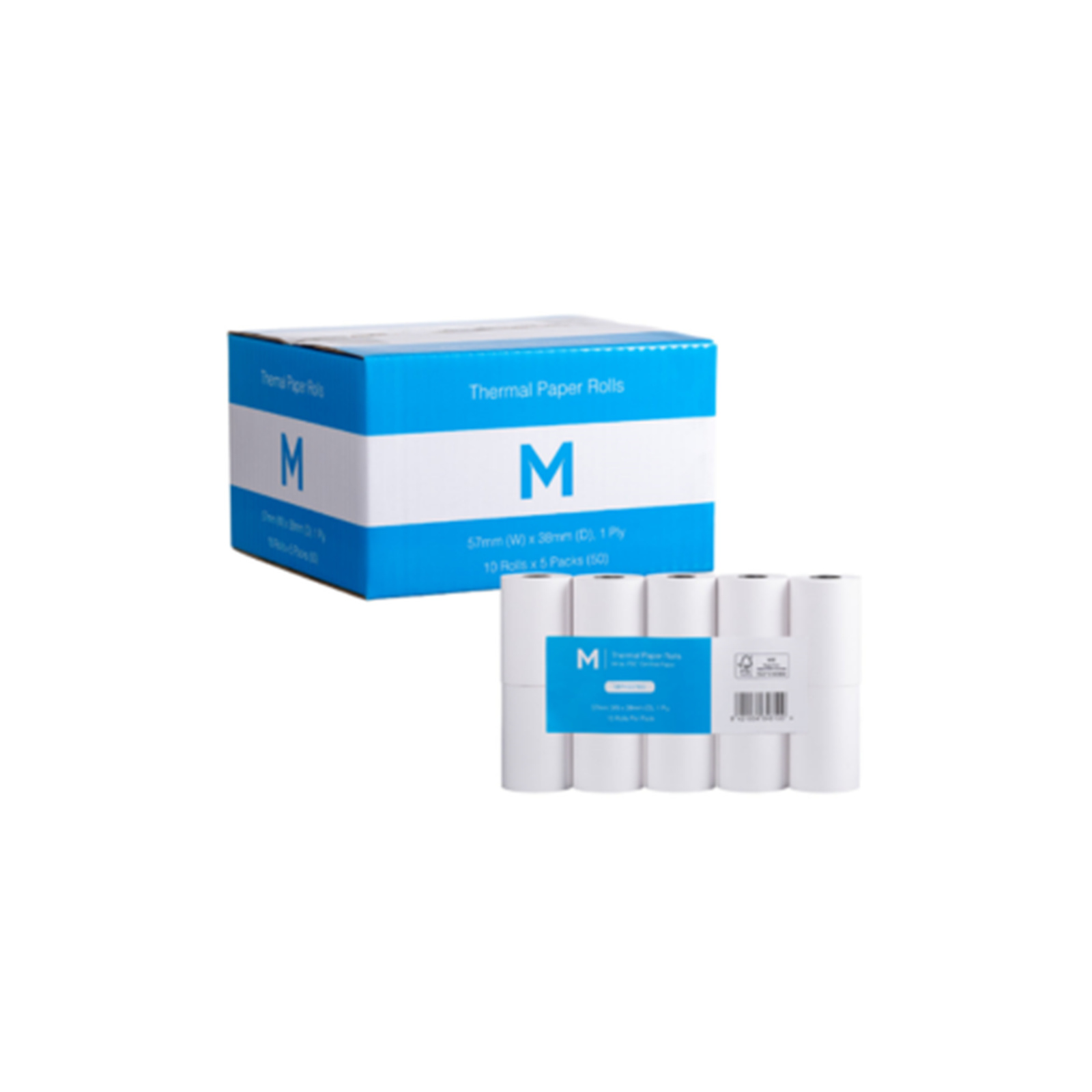 MPH22160 - Thermal Paper Roll, White, 57mm x 38mm, 1 Ply, FSC Mix, Eftpos Machine, 50 Rolls/CTN