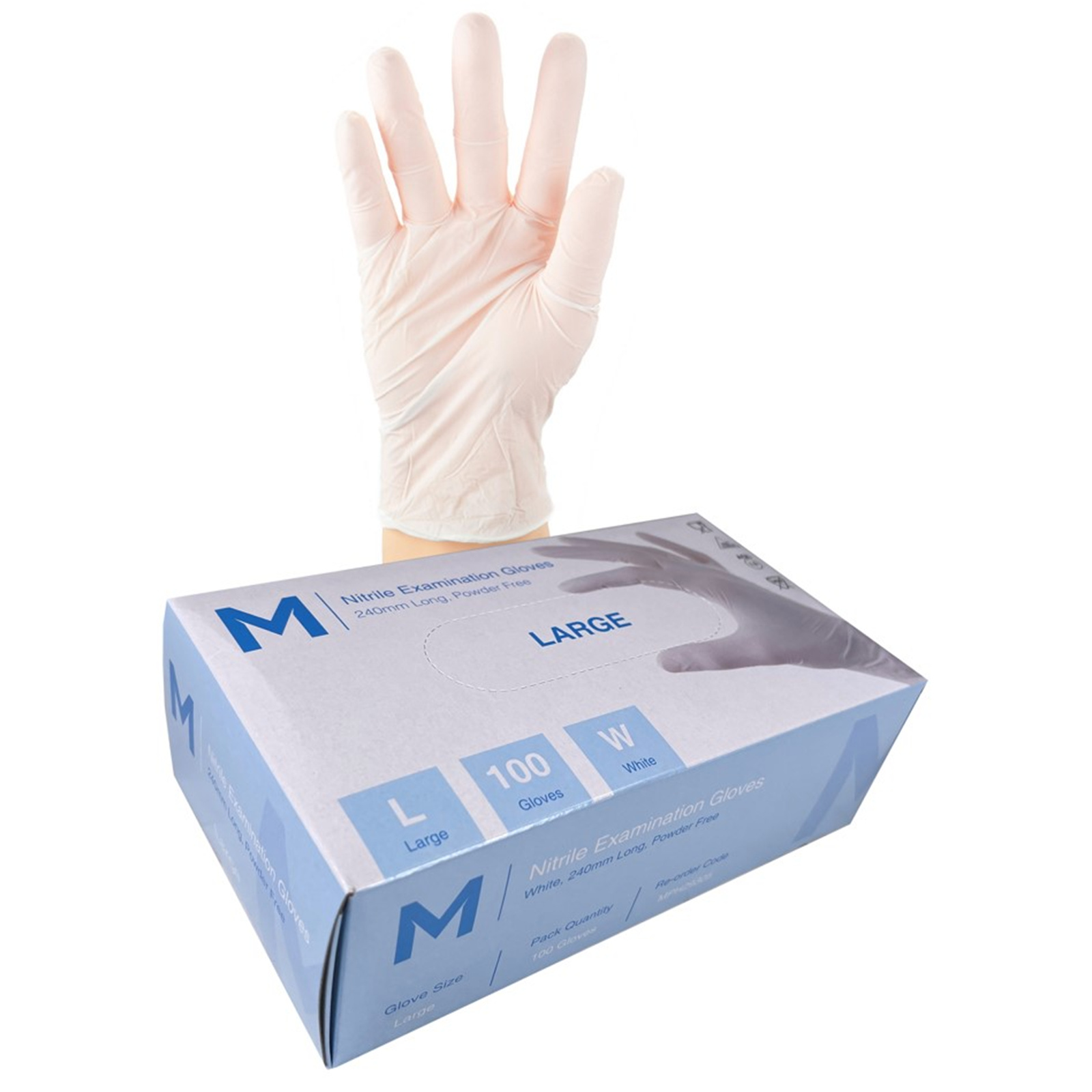 Matthews MPH29305 Nitrile Examination Gloves Powder Free - White - L 240mm Cuff - 5.0g - 100 Gloves / Pack - 1000 Gloves / Box - 1 Box