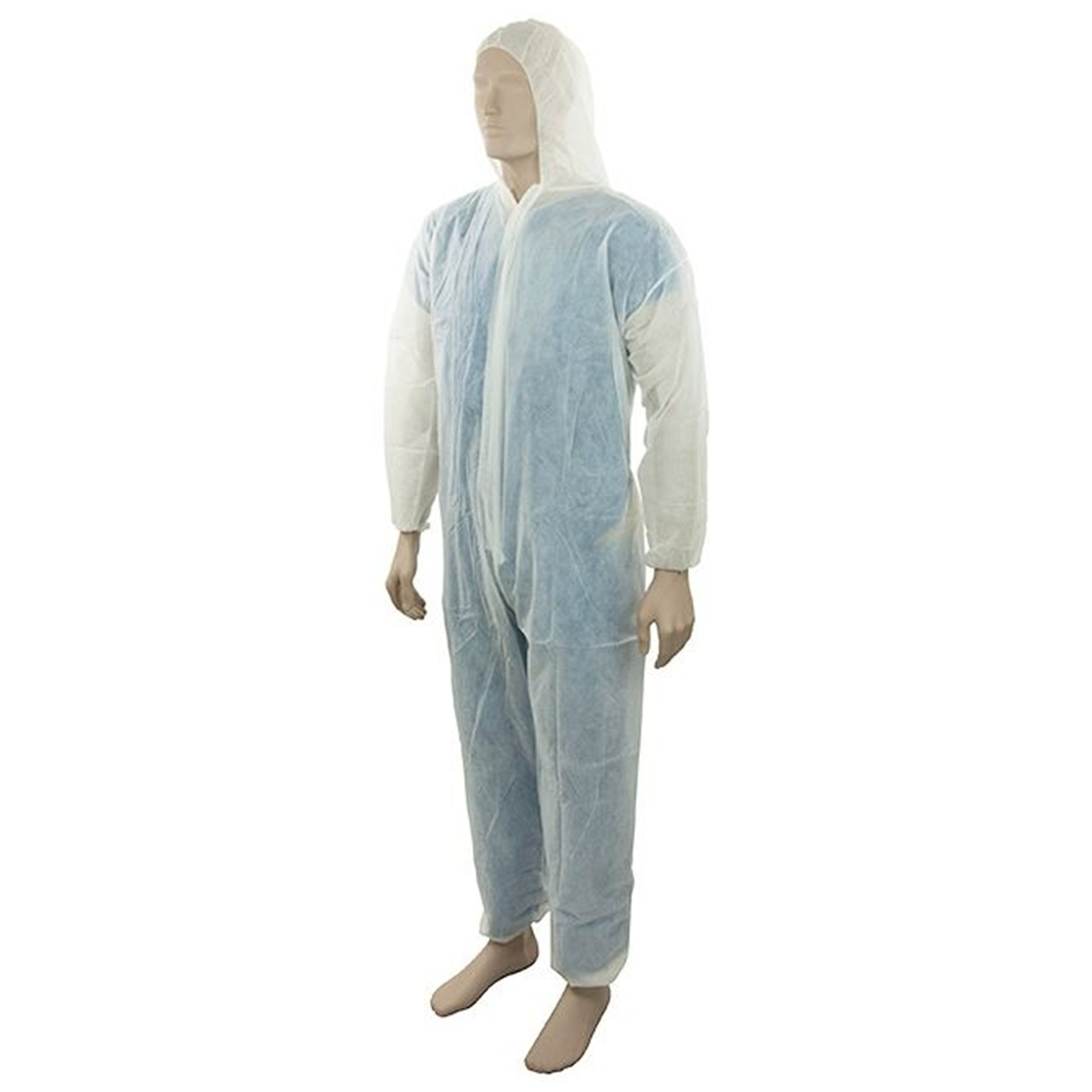 Polypropylene disposable coveralls protect you and your clothes from dirt and grime. Made from 50gsm non woven polypropylene, these coveralls are light weight and comfortable to wear. Ideal for painting, dusty areas and general light industry. Design features include front full body zipper and elasticised hood, ankles and cuffs.