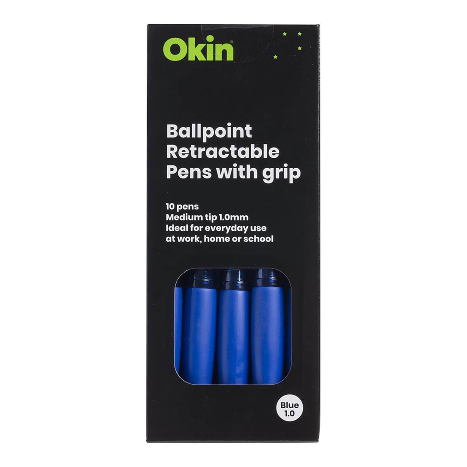Okin Retractable Ballpoint pens with grip are ideal for everyday use at work, home or school. They have a high quality ink that is waterproof and fadeproof. The medium tip provides smooth ink flow to avoid scratching and blotting.