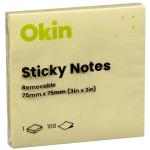Okin ISAN03Y Okin Sticky Notes 75mm x 75mm Yellow