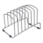 Office Supply Co U-Shaped File Rack with 7 slots to keep filing upright and tidy. Holds folders, files, books and magazines. 75mm wide slots with a bar at the back to prevent files slipping through. Manufactured in stainless steel with painted silver finish. Rubber feet to protect furniture. Dimensions: 205 H x 175 W x 260mm D.Specifications