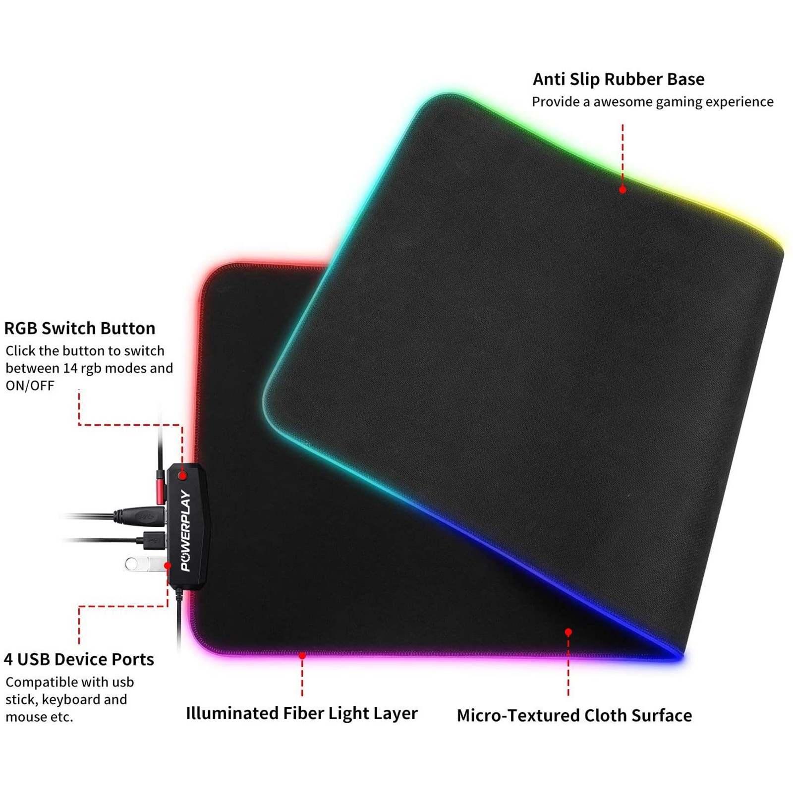 PowerPlay RGB Gaming Mouse Pad - Extended - Built in 4 Port USB Hub - 800 x 300mm