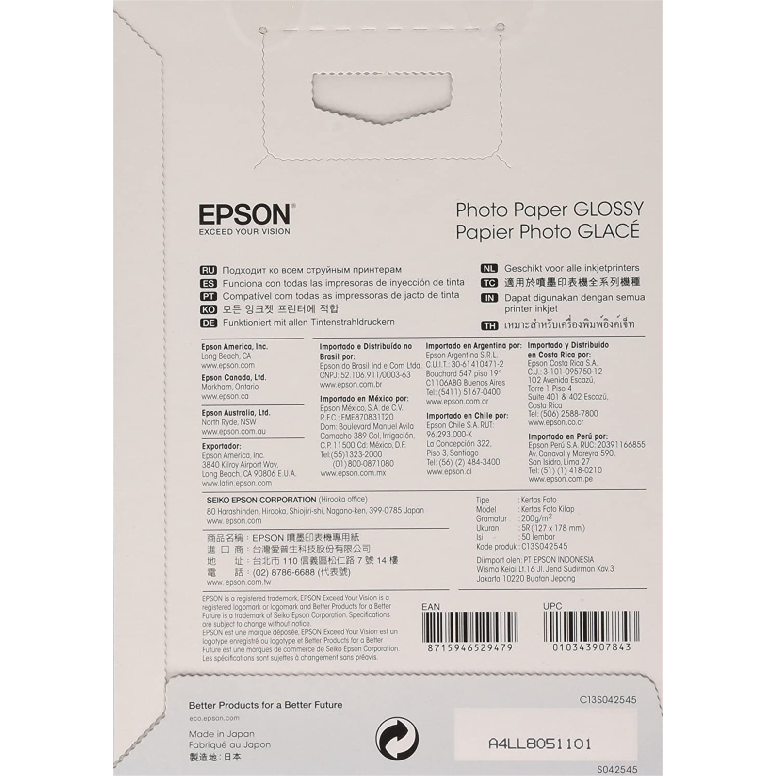Epson Photo Paper Glossy 5x7" 200gsm C13S042545 Pack Of 50