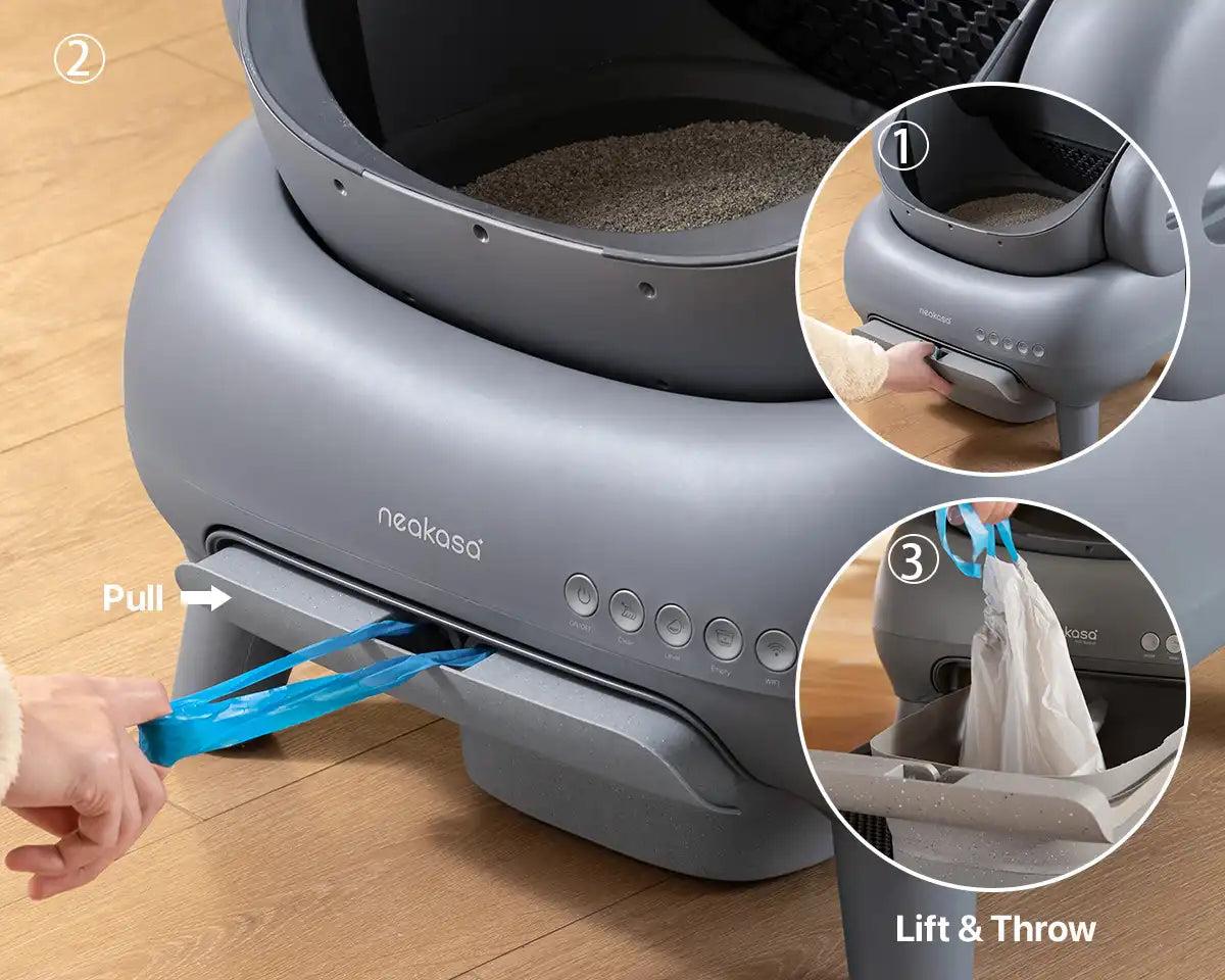 The Neakasa M1 cat litter box features a "Pull and Wrap" Waste Management System, ensuring a seamless, odor-free and contactless litter disposal process.